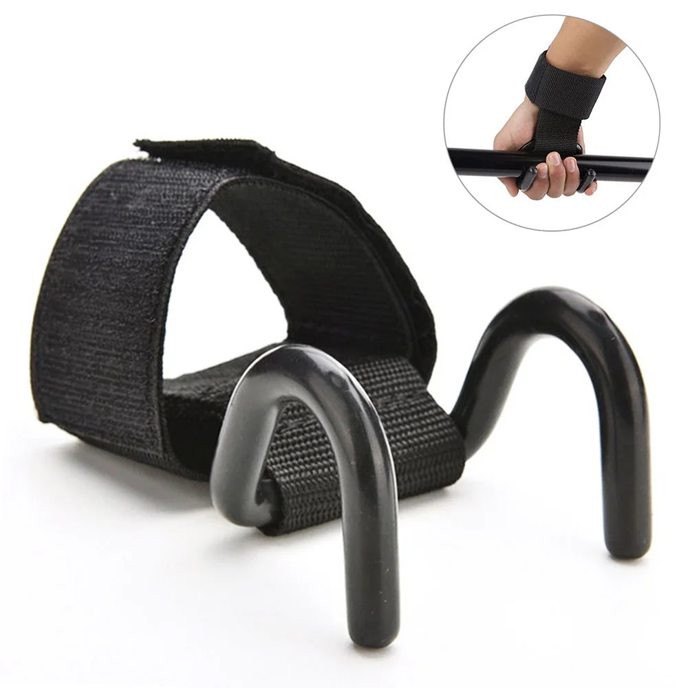 1PC Adjustable Strong Steel Hook Grips Straps Weight Lifting Strength Training Gym Fitness Black Wrist Support Lift Straps
