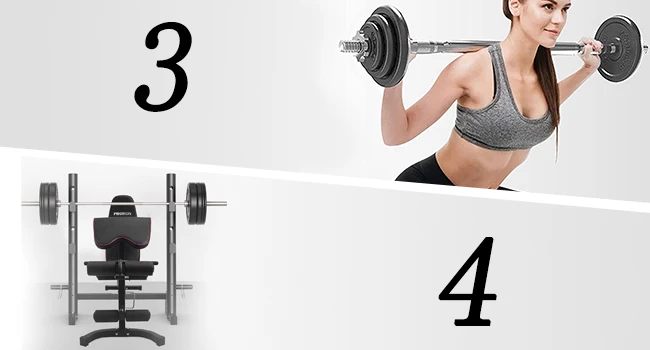 1 Adjustable weight plates 2 Extension bar offered 3 Strong link 4 Iron spin lock