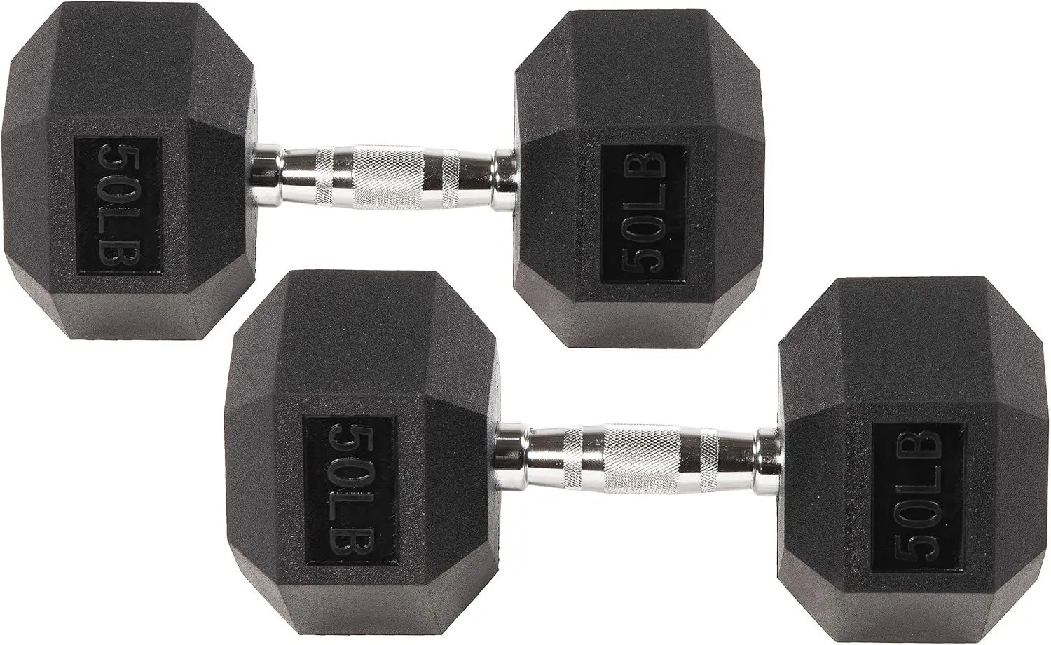 • Hexagon shape rubber encased heads help prevent rolling and and provide easier storage