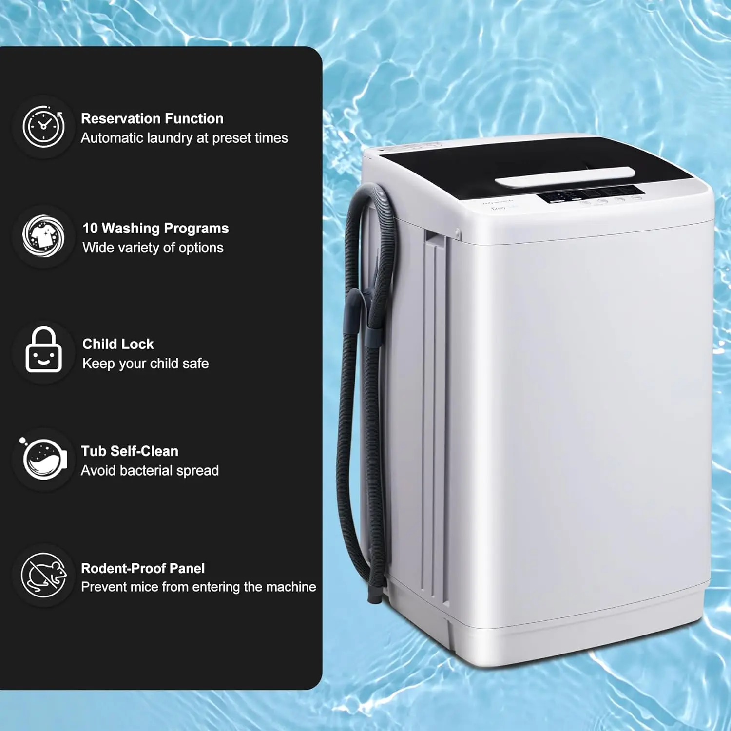 Full Automatic Washing Machine, 17.6Lbs Top Load Portable Washer with Drain Pump, 10 Wash Programs 8 Water Level Washe