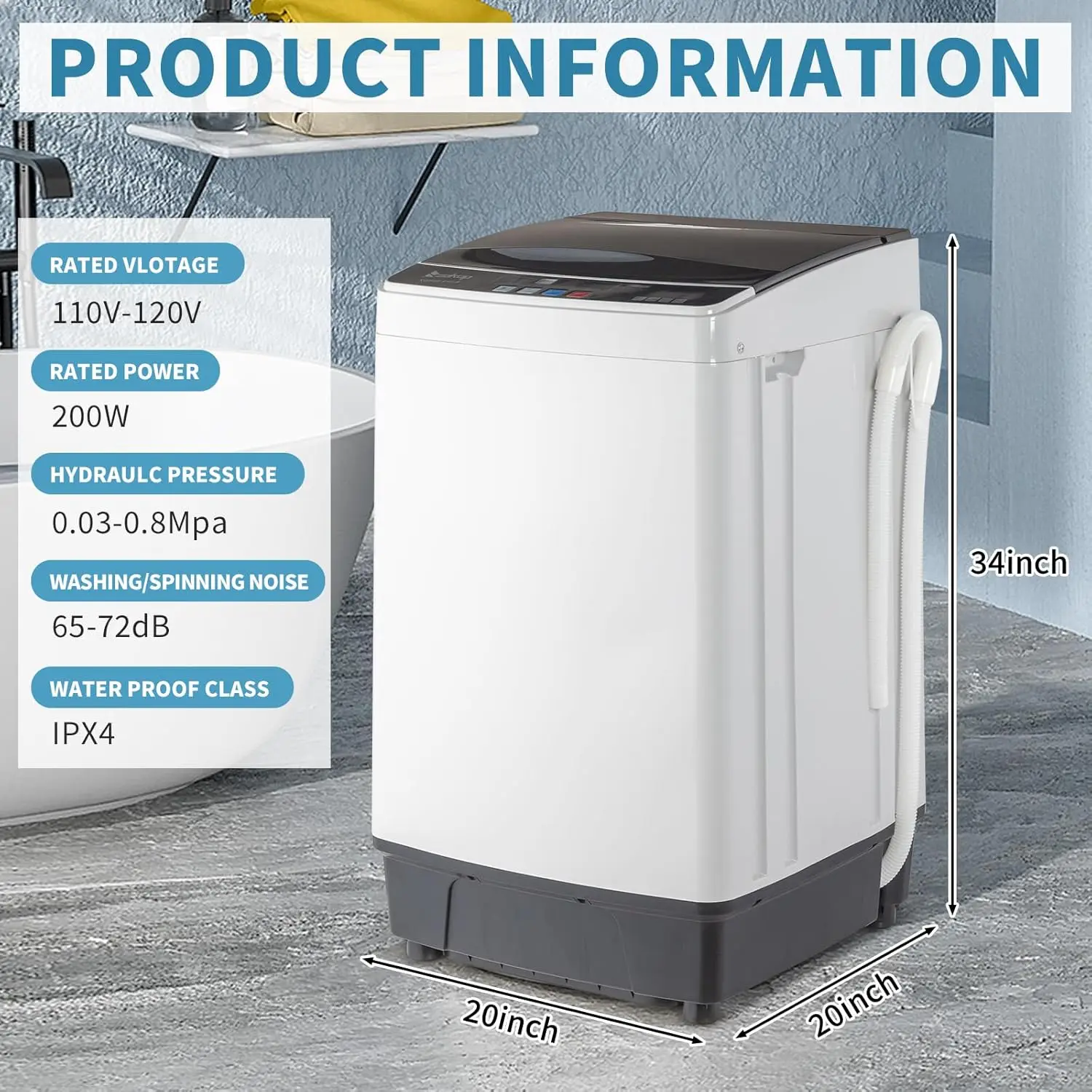 Full Automatic Washing Machine, 17.6Lbs Top Load Portable Washer with Drain Pump, 10 Wash Programs 8 Water Level Washe
