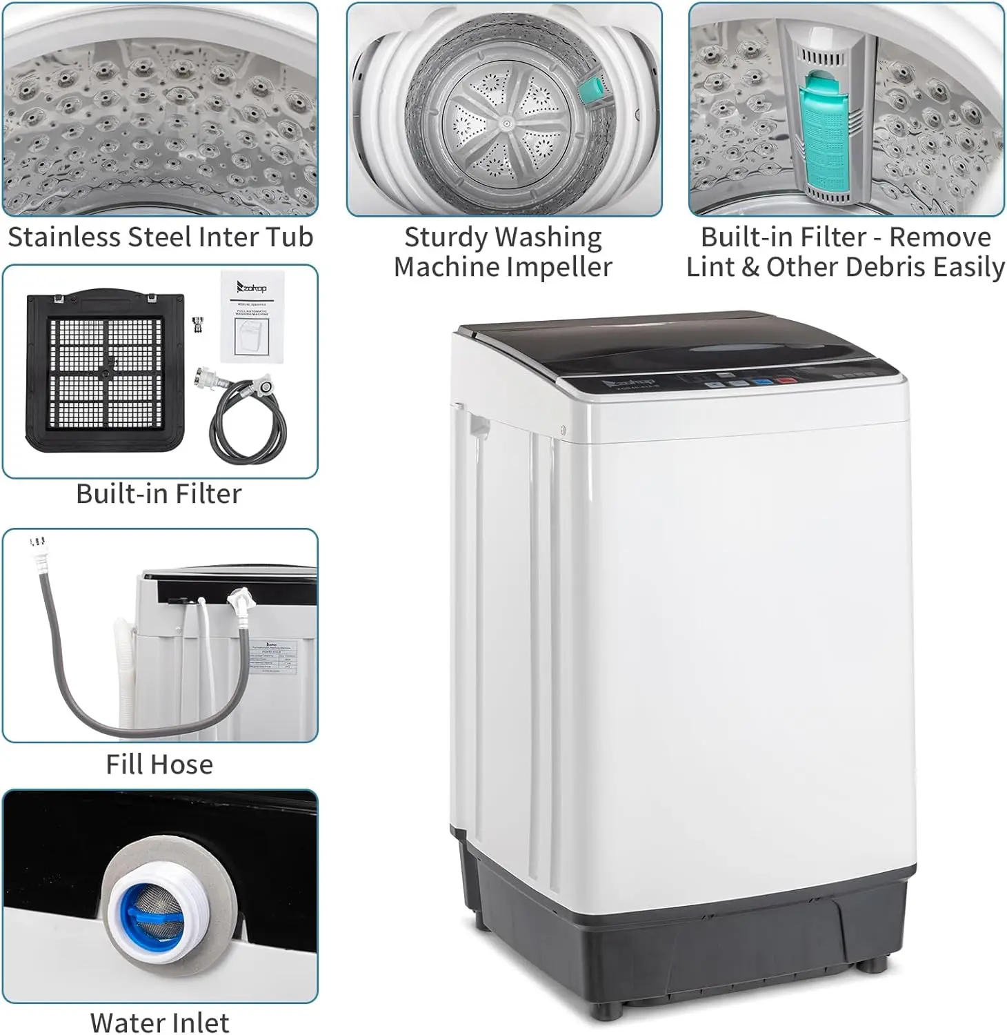 HomeConsumer Electronics Full Automatic Washing Machine, 17.6Lbs Top Load Portable Washer with Drain Pump, 10 Wash Programs 8 Water Level Washe