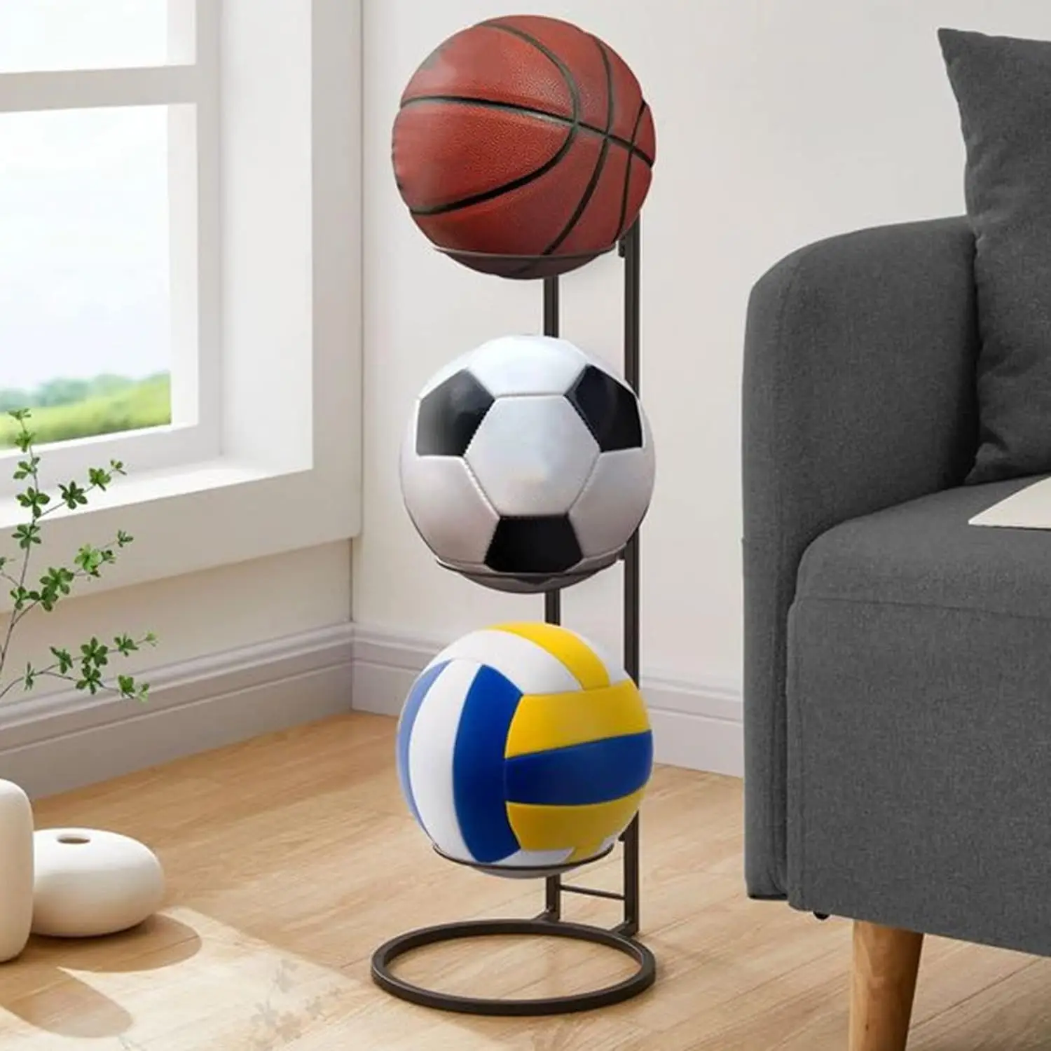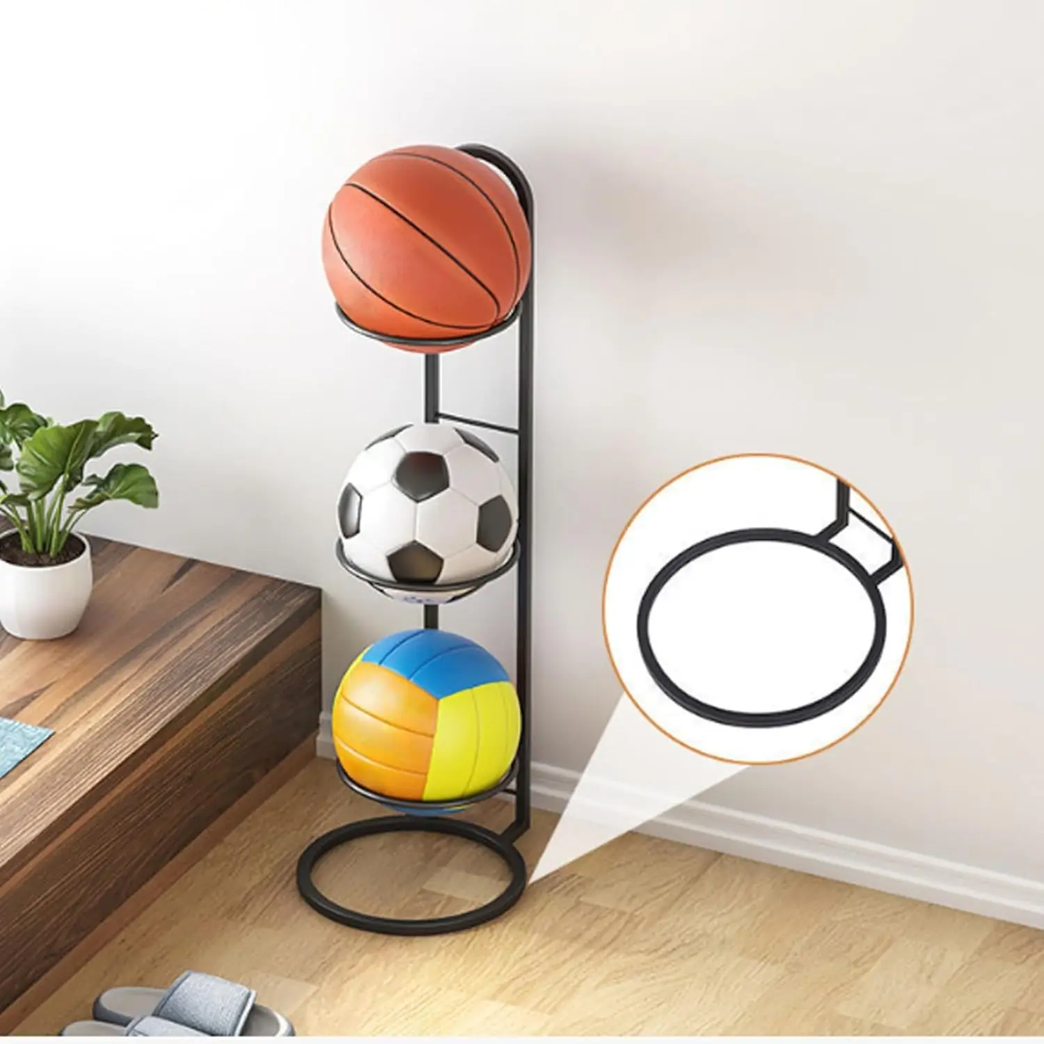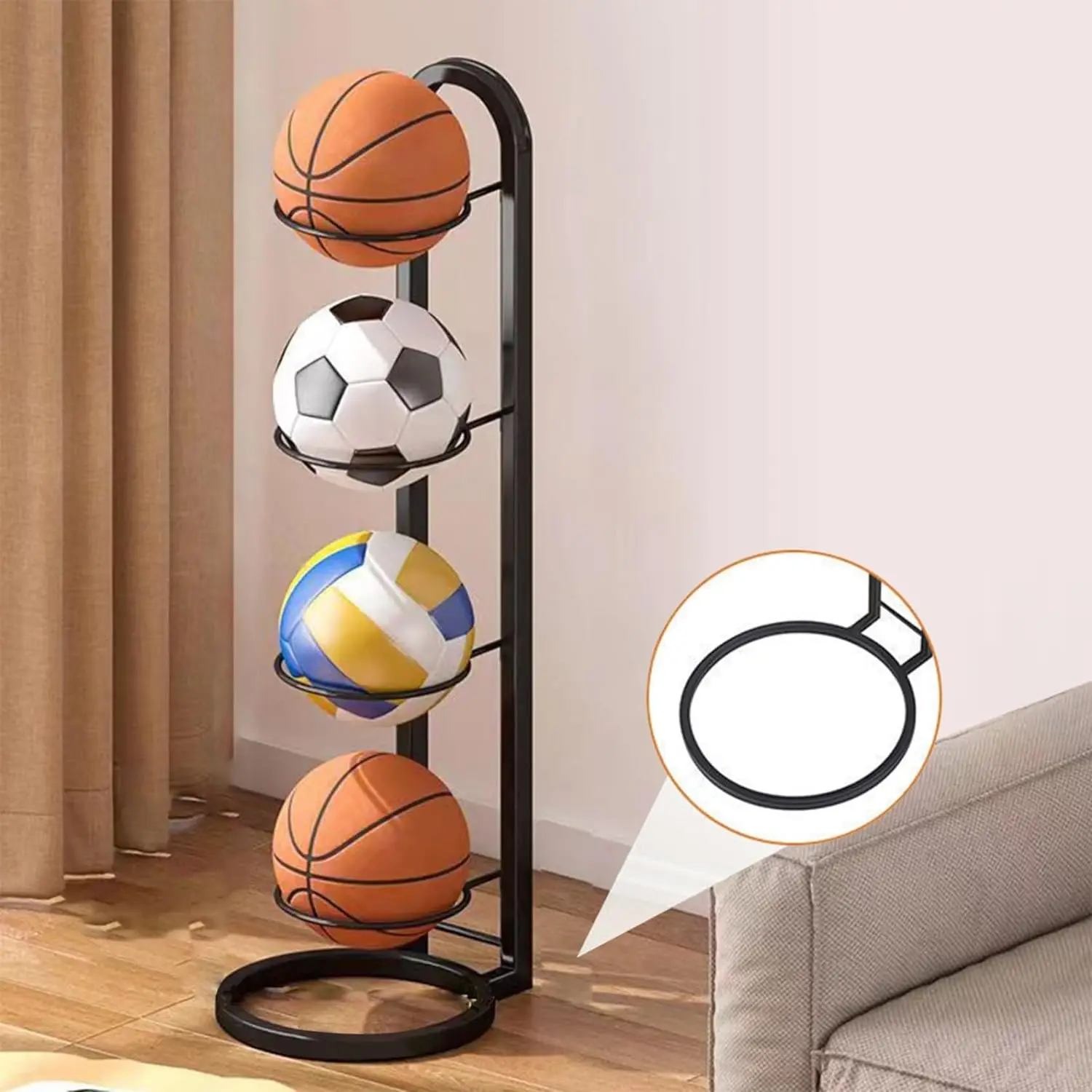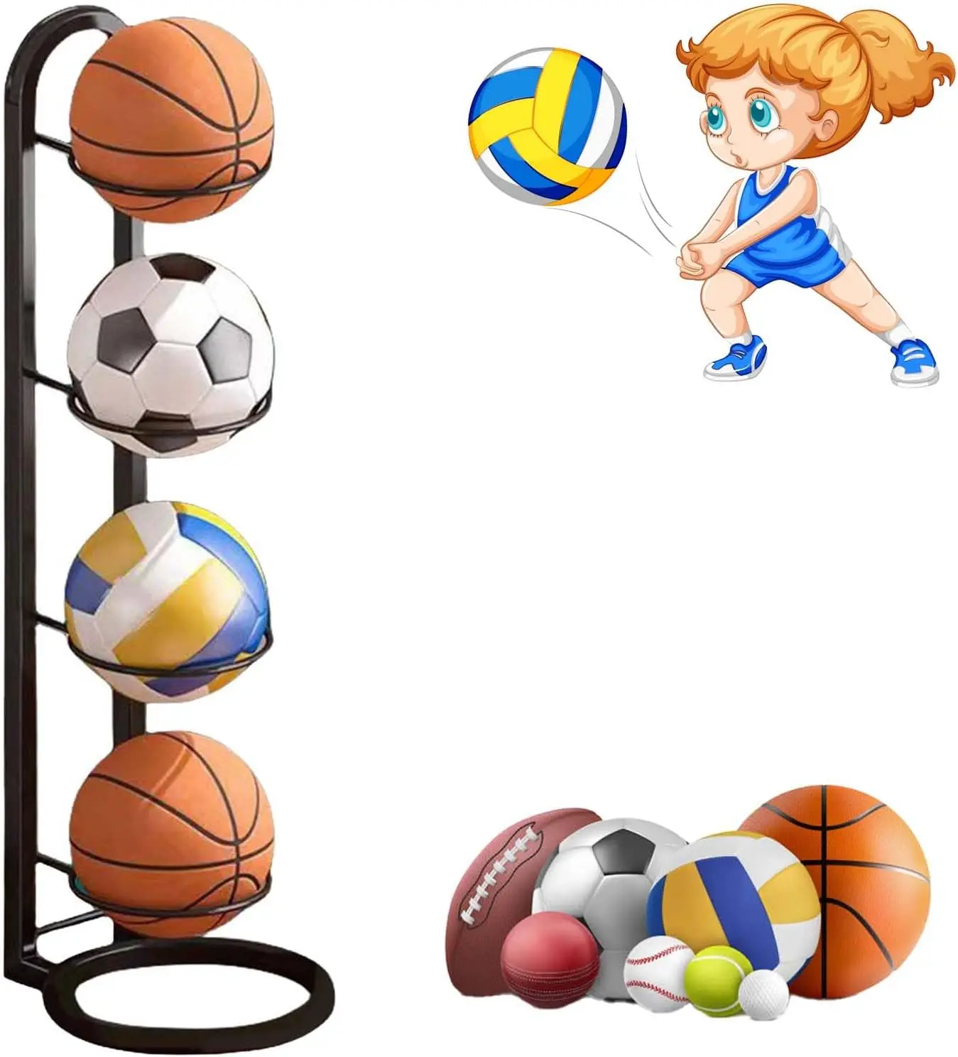 • ❈【Multifunctional ball storage rack】This basketball storage rack can not only be used to store basketballs, but also can be used to store volleyballs, footballs and other sports balls to meet your diverse storage needs.