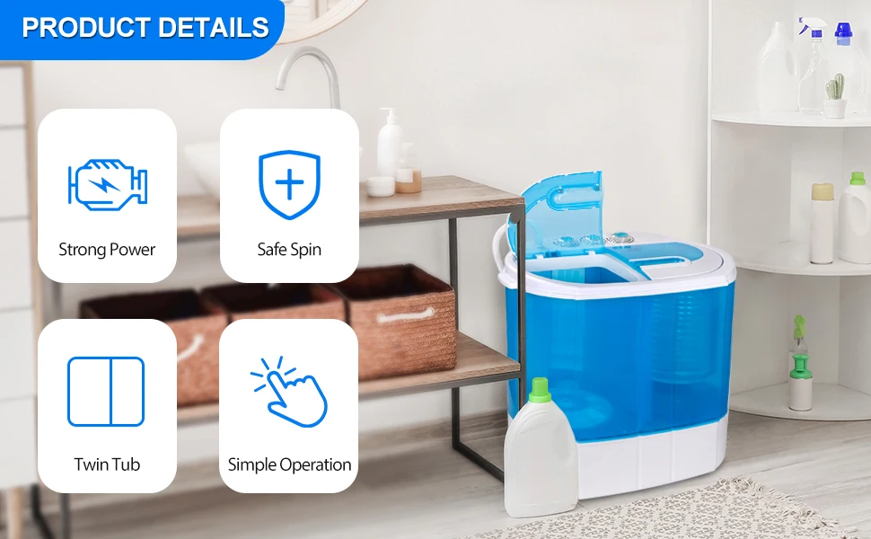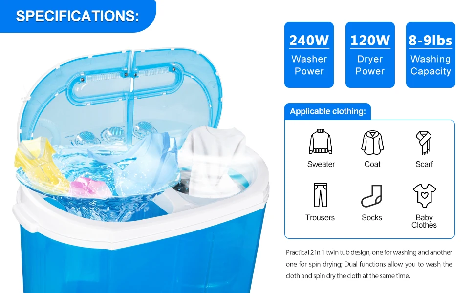 About this item Fully Automatic Washing Machine – Portable washing machine is a 2-in-1 compact washing machine, you only need
