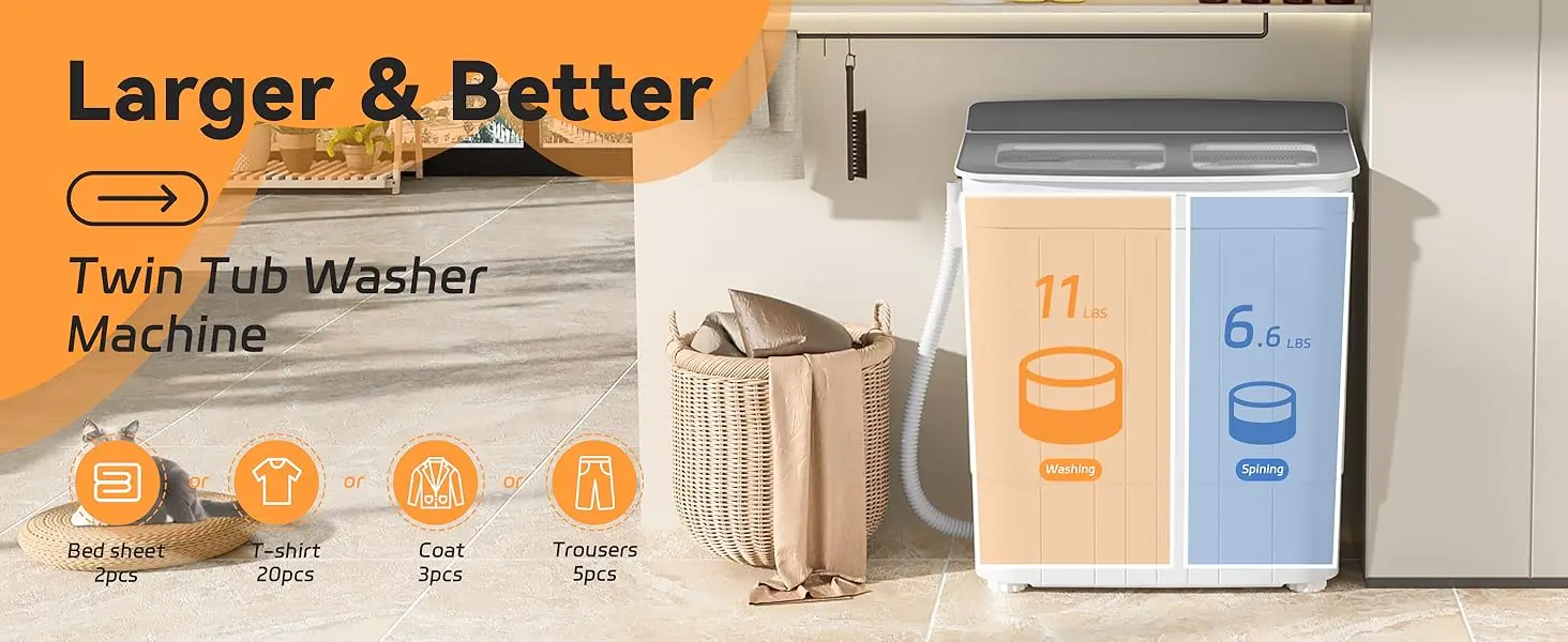 HomeConsumer Electronics Portable Washing Machine Mini 17.6 Lbs Compact Washer Machine And Dryer Combo,Small Twin Tub Washer with Spin Cycle f