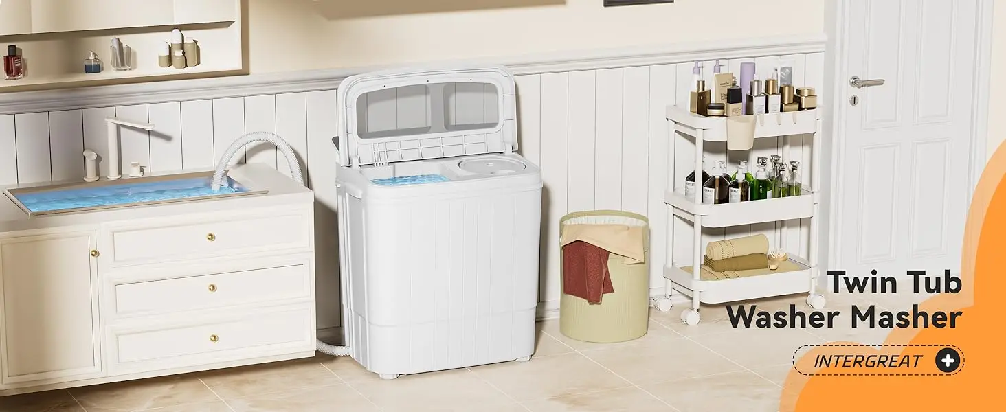 INTERGREAET twin tub washing machine is perfect solution for doing laundry in limited space. Powerful motor makes your washing more faster and cleaner, meanwhile more convenient and less energy consumption.