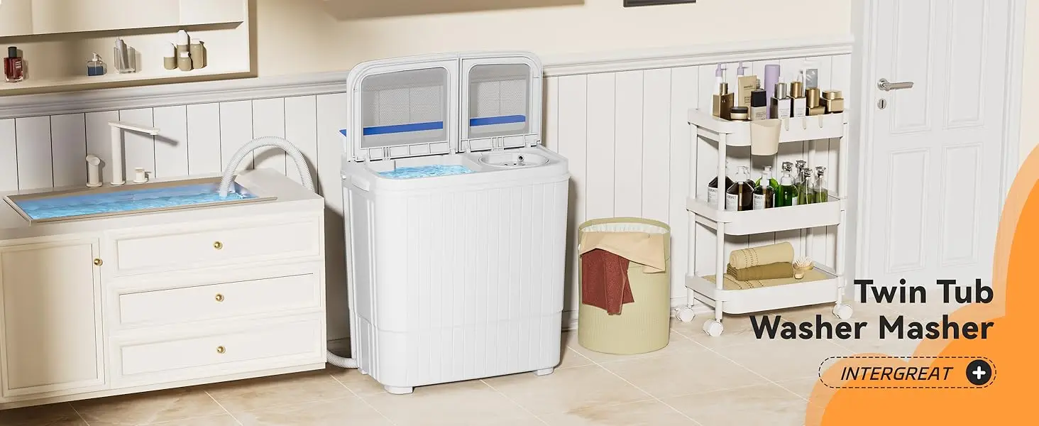 INTERGREAET twin tub washing machine is perfect solution for doing laundry in limited space. Powerful motor makes your washing more faster and cleaner, meanwhile more convenient and less energy consumption.