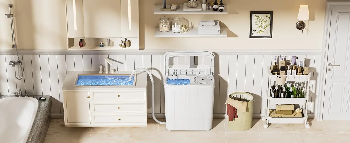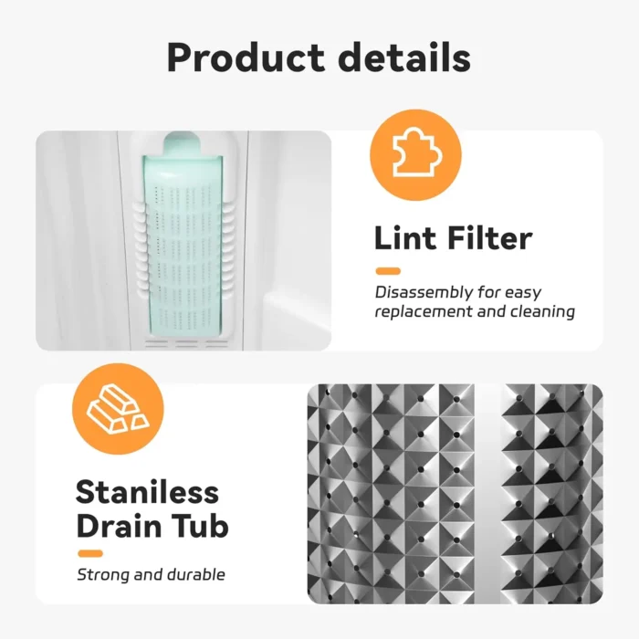About this item Fully Automatic Washing Machine – Portable washing machine is a 2-in-1 compact washing machine, you only need