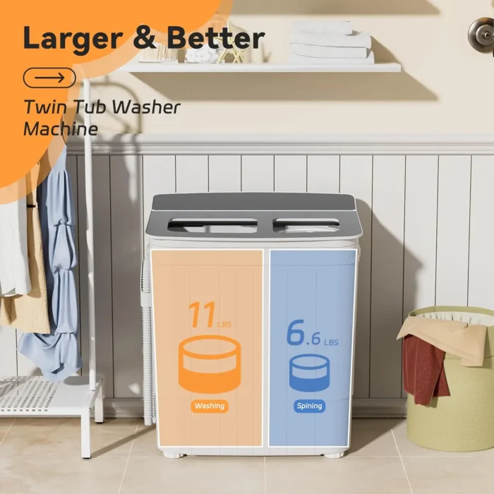 HomeConsumer Electronics Portable Washing Machine Mini 17.6 Lbs Compact Washer Machine And Dryer Combo,Small Twin Tub Washer with Spin Cycle f