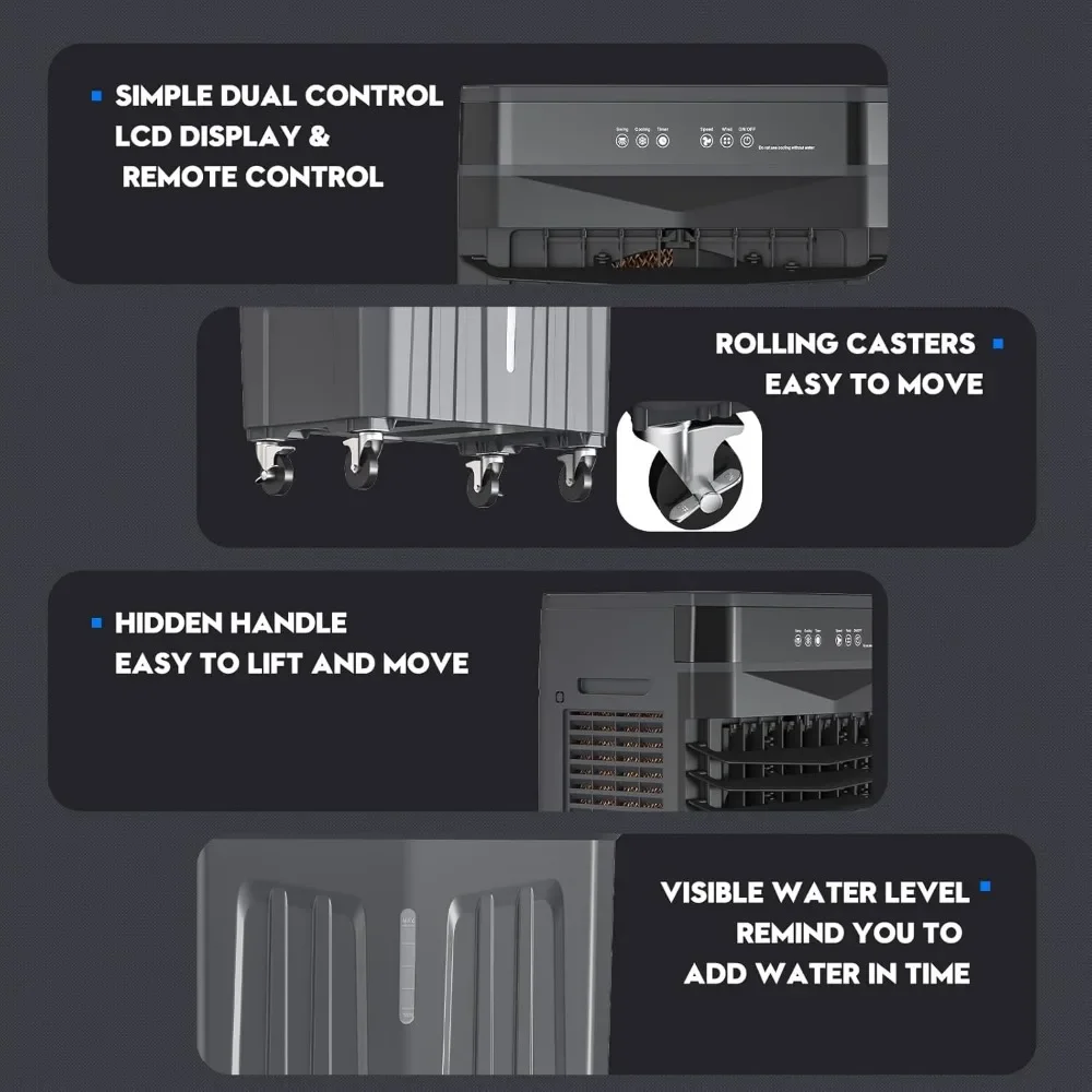 HomeConsumer Electronics Swamp cooler air conditioner with remote control,2700CFM 12H timer 3-in-1 portable evaporative air cooler, 8.2 gallon water tank
