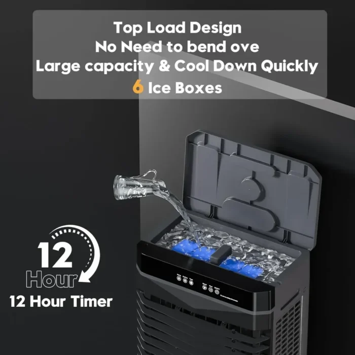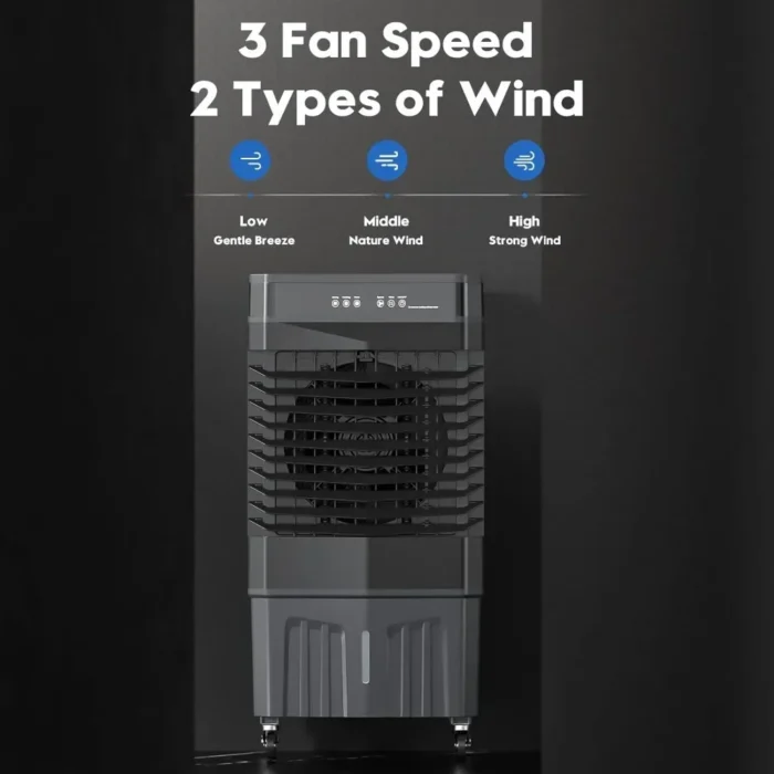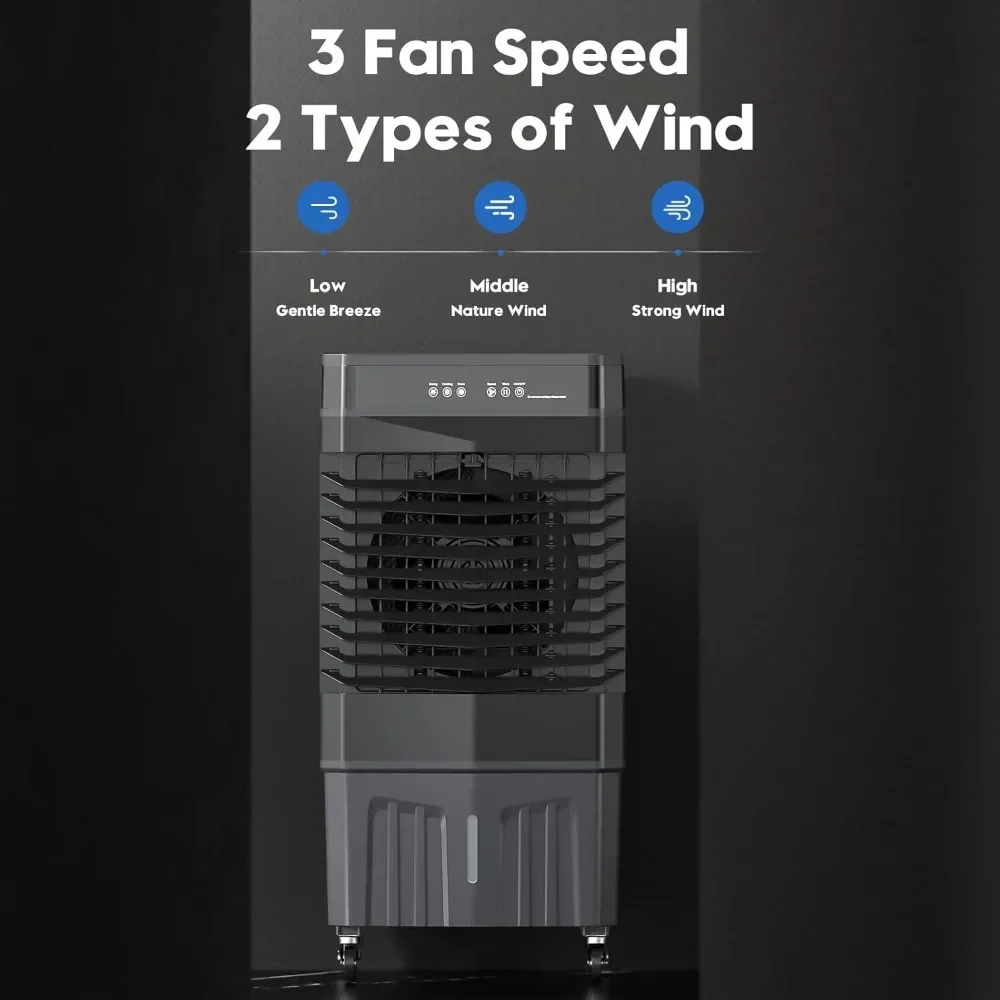 [Personalize Your Comfort] With the swamp cooler, you can freely customize your cooling experience. Choose from 3 different modes (normal, natural, cooling) and 3 wind speeds (low, medium, high) to produce a total of 9 unique cooling effects. By placing 6 ice packs into the water tank, you can enjoy faster cooling speed and increase the moisture content of the surrounding air.