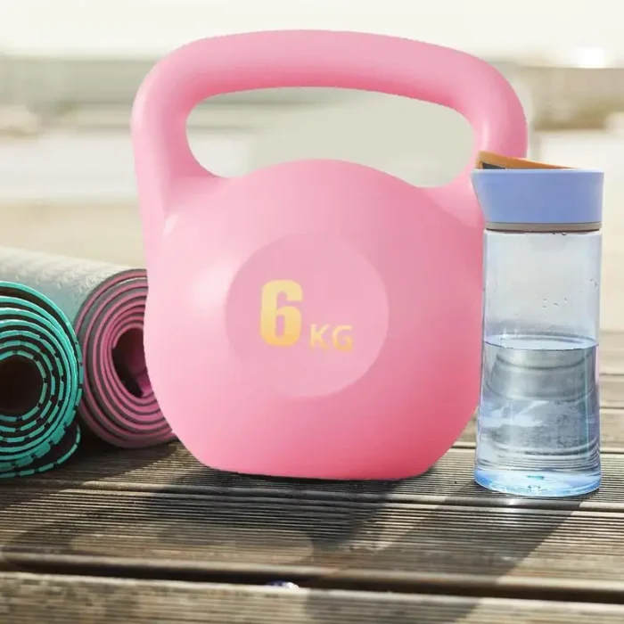 This fashionable pink kettlebell is perfect for versatile exercises that effectively strengthen the buttocks muscles.