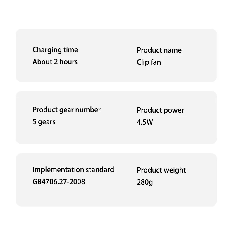 [Rechargeable and portable] The 8000mAh battery takes only 4.5 hours to fully charge, and can provide 3-7 hours of working time after a full charge (depending on different speeds). This mini lightweight clip fan is light and compact, easy to carry.