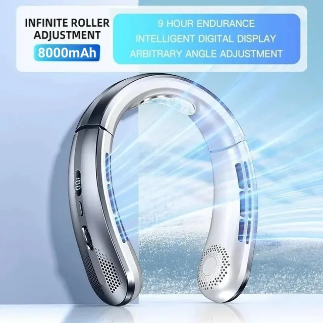 Xaomi Hanging Neck Fan Portable Bladeless Mini USB Rechargeable Mute LED Digital Display Power Electric Fans Summer Air Cooler