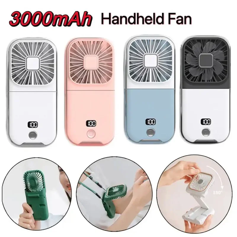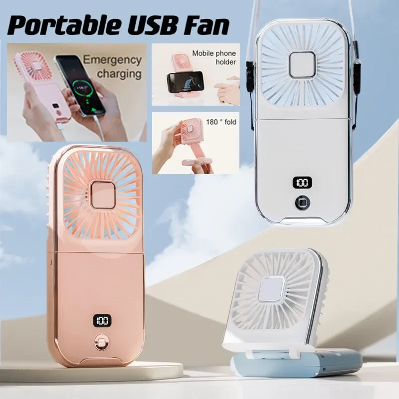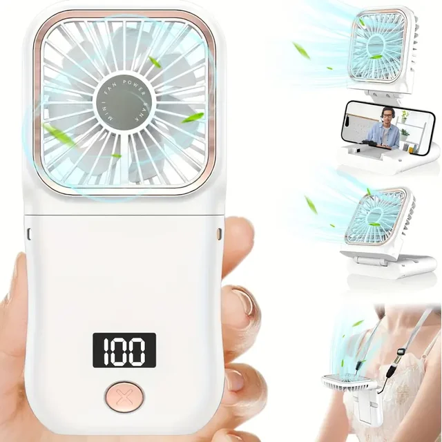 4. Handholding, neck hanging and table fan: You can hold it and hang it around your neck with a lanyard (included). When you need to hold your mobile phone and other items, free your hands. In addition, you can fold it and put it on the table.